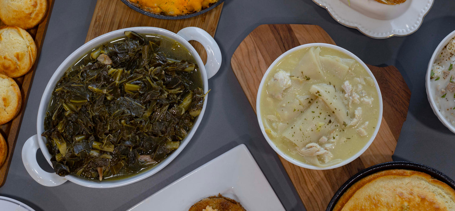 Our menu changes regularly but a few favorites include a Cornbread Flight appetizer, Chicken Fried Steak Sandwich, and entrees including Fried Catfish and Chicken and Pastries. We have plenty of desserts too, including Banana Pudding and Pecan Pie. Be sure to stop by the Bake Shop on your way out and take home anything you like!